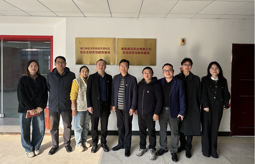 为深入贯彻落实党建引领高质量发展的工作要求,搭建校地企党建共建共享新平台,12月9日,我校经济贸易学院党总支经济贸易学院学工党支部及茶学院教工党支部联合长沙市岳麓区天源社区党总支、湖南唐羽茶叶有限公司党支部隆重举行“党建引领聚合力,共建共荣促发展”校地党支部共建暨党性教育基地揭牌仪式。天源社区党总支书记、居委会主任毛略滔、天源社区党总支组织委员彭璠、唐羽茶叶有限公司党支部宣传委员刘焕馗,党委委员、马克思主义学院党总支书记周政明,经济贸易学院党总支书记谢立靖,茶学院教工支部书记、副院长廖伟,马克思主义学院党总支副书记、副院长肖彬,经济贸易学院党总支副书记邹磊及济贸易学院学工党支部书记方红梅等共同出席活动。
