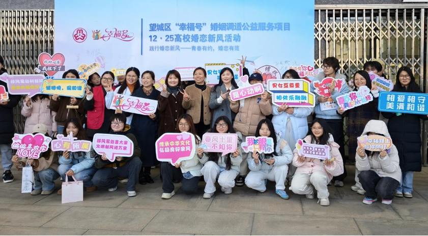 为积极倡导现代文明婚恋新风,切实服务青年成长发展需求,12月25日,湖南商务职业技术学院(外贸校区)联动望城区妇联、长沙市湘江公证处、区婚姻中心、区妇幼保健院共同举办“践行婚恋新风—青春有约,婚恋有范”主题活动。旨在引导青年树立积极、理性、文明的婚恋观念,推动社会主义核心价值观在婚姻家庭领域落地生根。