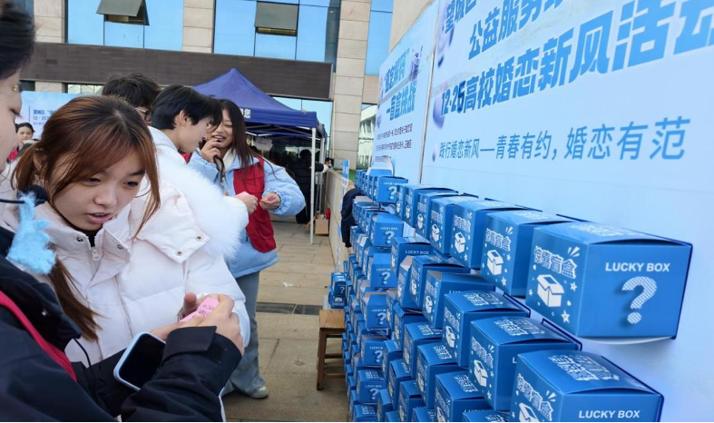与此同时,充满趣味与意义的婚恋新风主题互动市集同步开放。市集设置手工社团展示区、核心游戏互动区、专业咨询解读区三大特色区域,将健康婚恋观念融入沉浸式体验之中。在手工社团展示区,同学们用扭扭棒编织情感纽带、手写“家”字传递温暖祝福,以手工共创的形式诠释“用心经营,生活皆可成艺”的积极理念;核心游戏互动区内,“心意漫邮”让大家在书信往来中传递心声与期许,“观念解码”盲盒挑战让青年在趣味互动中学习婚恋知识、澄清认知误区;专业咨询解读区里,区婚调中心调解员与区妇幼保健专家坐镇,为有需要的师生提供一对一的公益咨询服务,精准解答婚恋困惑、普及情感心理与妇幼健康知识,及时回应青年关切。