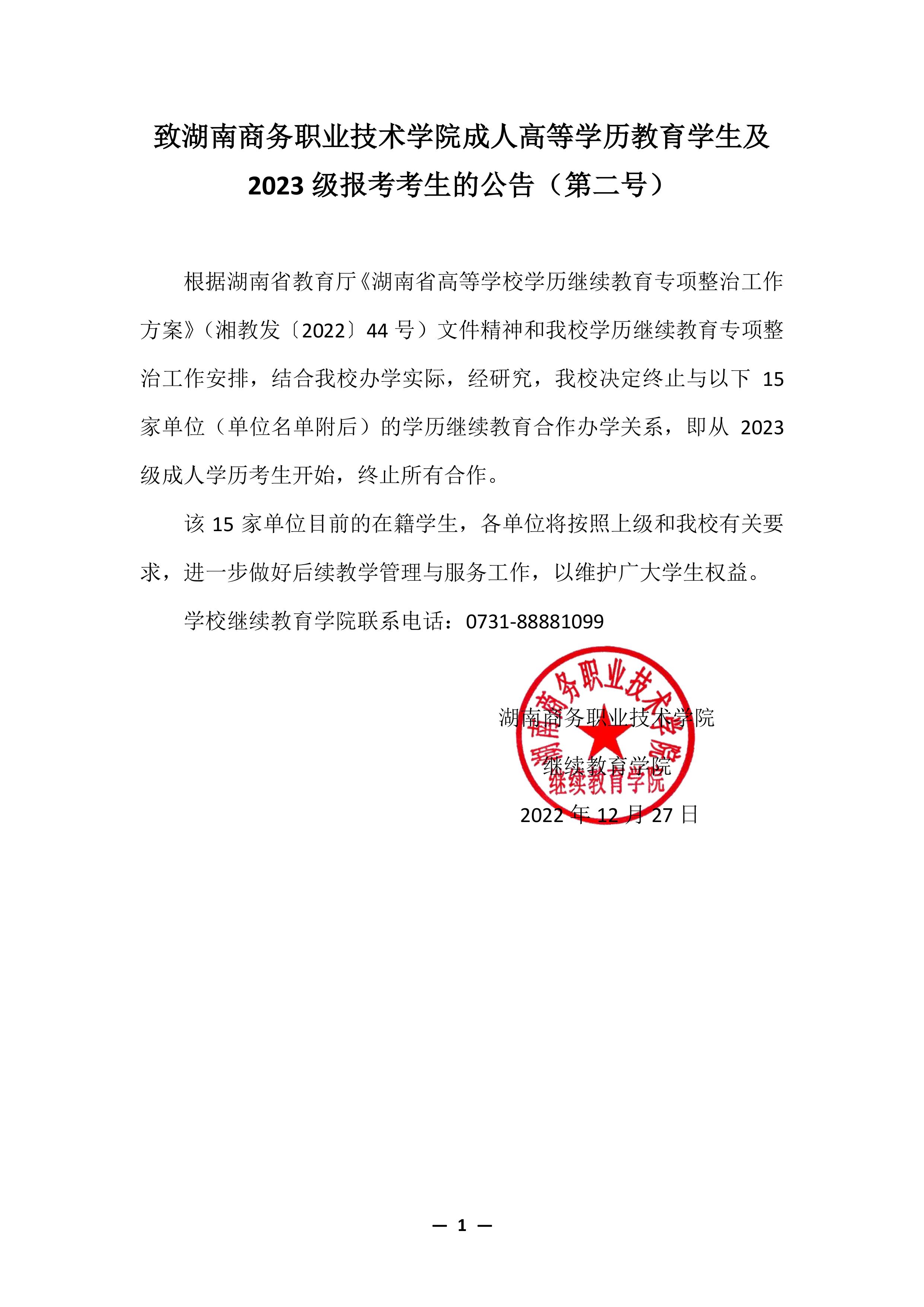 致成人高等学历教育学生及2023级报考考生的公告(第二号)
