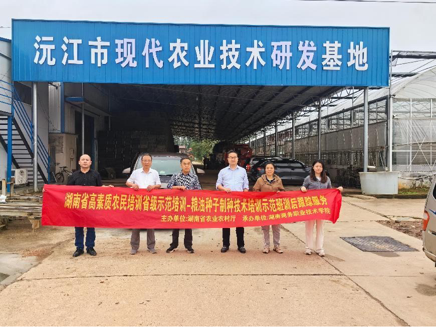 为检验高素质农民培训成果,助力农村经济、种业高质量发展,2025年5月7日至8日,由湖南商务职业技术学院党委委员、副院长姜华斌、继续教育学院院长张庆带队,组织特邀专家团队及培训工作组赴望城、宁乡、益阳、永顺、常德、南县、沅江等地,对2024年湖南省高素质农民培训省级示范培训-种子产业发展带头人专题培训班(农业经理人)及粮油种子制种技术培训示范班学员开展训后跟踪回访服务。此次回访聚焦学员回乡后生产经营转化成效,通过实地调研与技术指导,助力乡村经济与种业高质量发展。