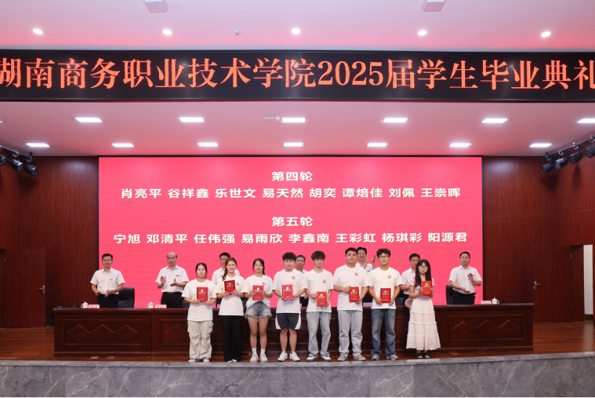 “再见了相互嫌弃的老同学,再见了来不及说出的谢谢……”6月17日,当这首独属于毕业季的旋律在湖南商务职业技术学院报告厅响起时,台下2025届300余名毕业生代表中,有人悄悄抹去了眼角的泪水。在32℃的盛夏骄阳里,那些被汗水浸透的荣誉证书、创业者的第一桶金故事、退役军人的飒爽敬礼,成为这场告别仪式最动人的注脚。