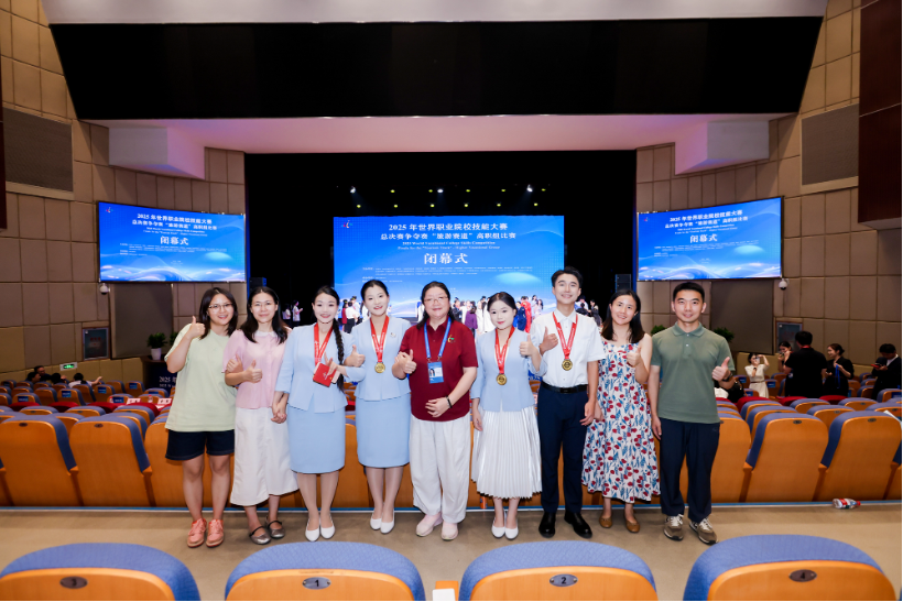 此次成绩的取得,凝聚了学校领导、行业专家、指导教师和参赛学生的共同智慧与辛勤付出,充分体现了我校旅游类专业建设的扎实成效和高素质技术技能人才的培养水平。今后,专业教学团队将以世界职业院校技能大赛为重要契机,进一步深化教育教学改革,挖掘旅游文化内涵,持续提升育人质量,努力培养更多适应文旅产业发展需要的高素质人才,为促进文化旅游产业高质量发展贡献力量!