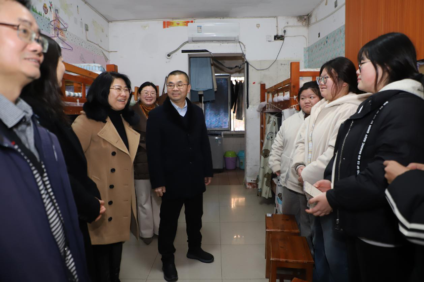 在宿舍内,李科与同学们亲切交谈。每位同学的专业学习进展与实习实践安排,并细致了解大家的宿舍生活、日常起居和人际交往等情况,认真倾听同学们对学校管理服务提出的意见与建议。同学们积极发言,现场交流氛围轻松务实。李科表示,“学生社区是重要的育人阵地,推进‘一站式’学生社区建设,必须紧紧围绕‘以生为本’这一核心,努力为同学们安心学业、舒心生活提供坚实保障。”