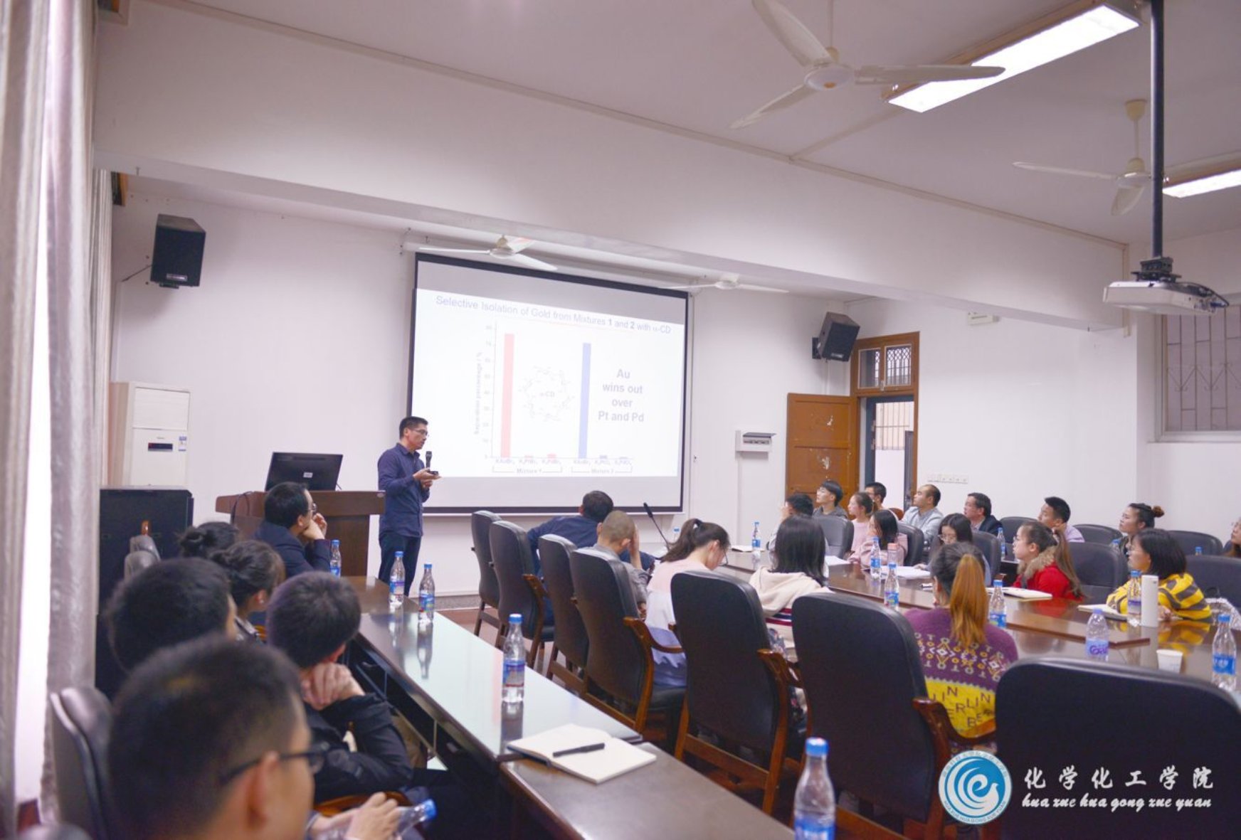 11月3日正值我校校庆,我院优秀校友、西湖大学刘志常研究员受邀回到母校并于化工楼310学术报告厅作了主题为“基于α-环糊精外层配位机理的黄金绿色提取新技术”的学术报告。此次报告由我院院长周虎教授主持,旨在开拓我院学子的科研思维、加强实验意识。