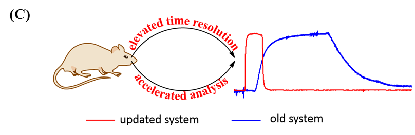 由于活体大脑中的分子具有快速释放的特点,提高时间分辨率以实现活体中分子的近实时测量具有重要的意义。本工作中,我们在原有的在线电分析系统的基础上,通过降低系统和自制探针的死体积,减小分子线性扩散以改善其检测的时间分辨率。升级的在线电分析系统具有时间分辨率高、分析速度快等优点。该系统成功地应用于大鼠在全脑缺血/再灌注病理过程中脑内纹状体区葡萄糖水平的连续测量。本工作的开展可实现活体体内分子水平的在线监测,为研究与生理和病理相关的分子水平的多样化变化提供可靠的在线分析平台。