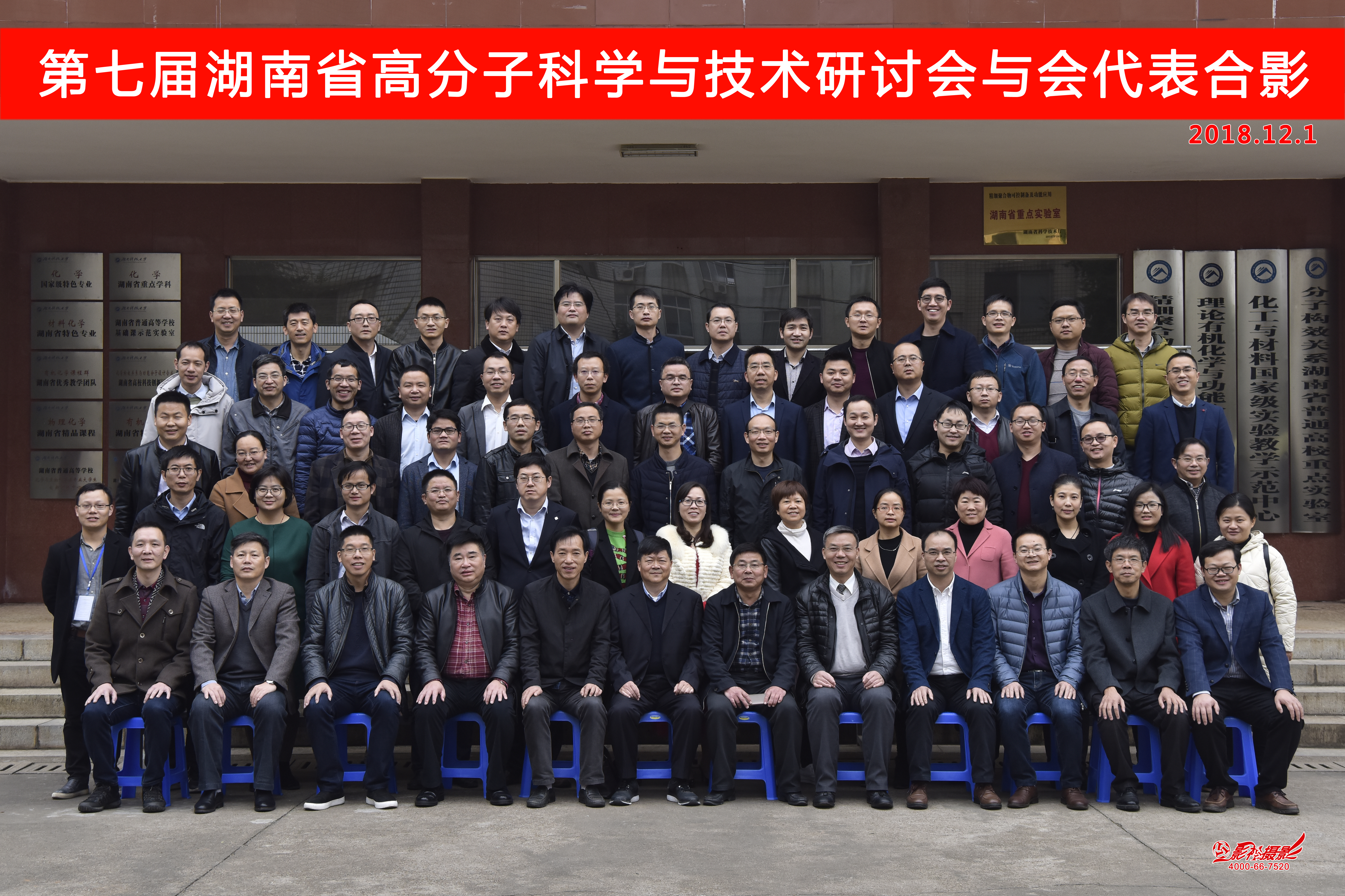 本次会议分两个阶段,第一阶段开幕式由我院党委书记曾荣今教授主持。湖南省化学化工学会高分子专业委员会主任、湘潭大学张海良教授致开幕辞,他对与会人员表示感谢,并强调湖南省高分子企业实力的强大是高分子专业委员会成立的原因之一。因此他希望,相关研究人员在研究科学的同时注重技术开发,针对高分子产业做好相应工作。我院院长周虎教授致欢迎辞,他对与会人员表示欢迎并就我们化学化工学院的基本情况做相关介绍。他表示,化学化工学院在师资力量、科研项目等方面均在进步。目前学院正在谋划新的突破方向——化学学科论文ESI全球排名前1%和下一轮的博士点。开幕式后,参会人员在化学楼前坪合影留念。
