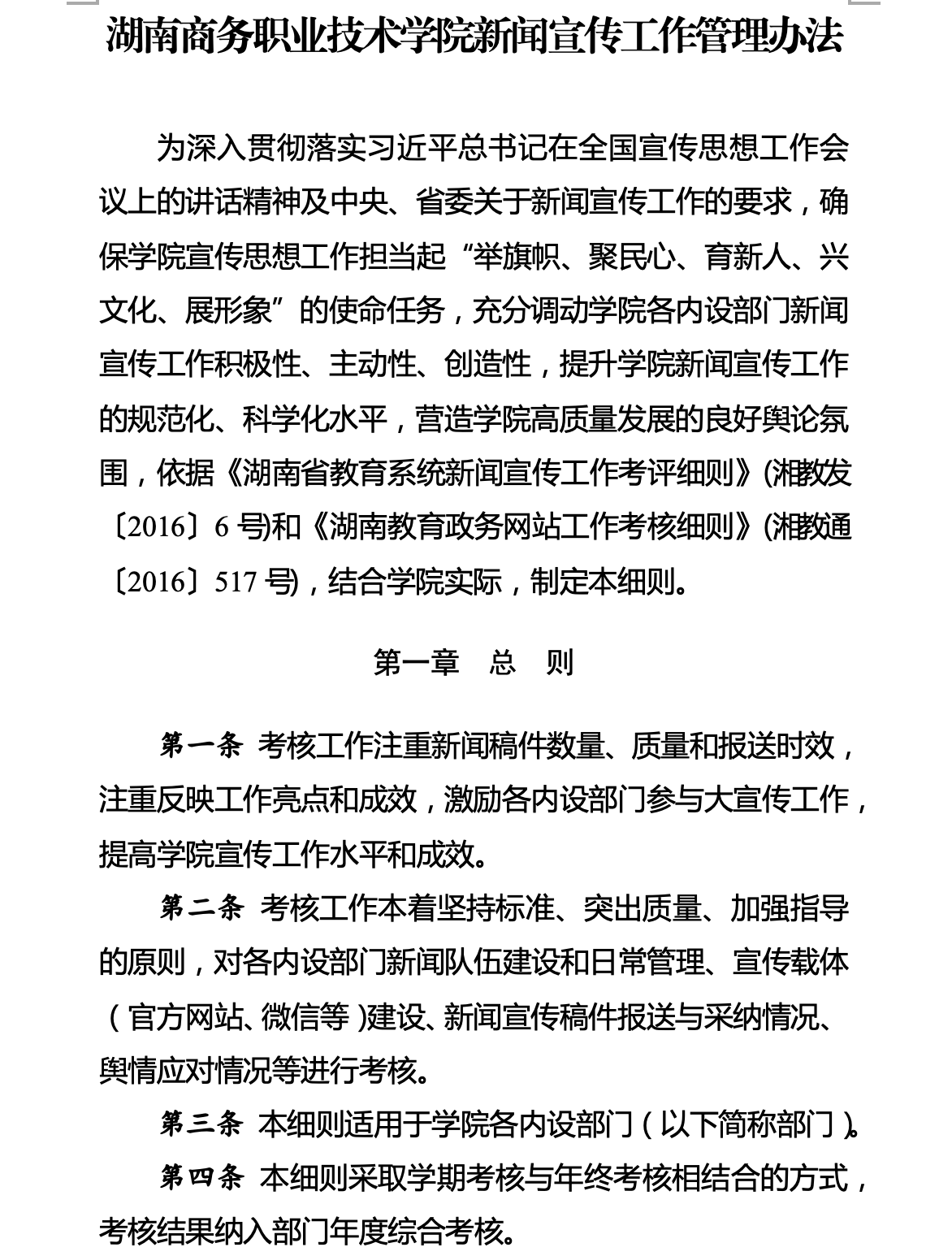 关于印发《湖南商务职业技术学院 新闻宣传工作管理办法》的通知