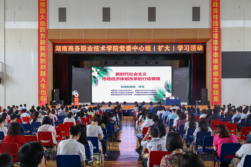 本网讯(记者 杨路平 刘芊宇 胡容)5月26日,我校开展2020年第三次党委中心组(扩大)学习,湖南师范大学经济研究所所长、教授、博士生导师刘茂松应邀来我校开展题为“新时代社会主义市场经济体制改革的行动纲领”的专题讲座。全体教职员工(不含非党员临聘人员)参加活动。