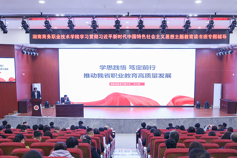 4月26日,湖南省教育厅副厅长王仁祥来到湖南商务职业技术学院,围绕职业教育的高质量发展主题,为主题教育读书班作专题辅导。全体院领导、党员干部参加学习活动。