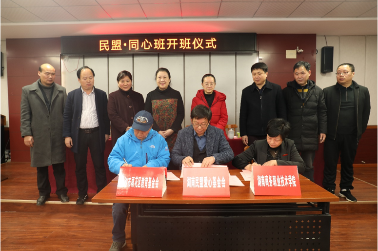 本网讯(记者 杨路平 供稿 民盟支部 摄影 赵平波、邱静)12月7日下午,湖南商务职业技术学院2020连锁、物流专业“民盟·同心班”开班仪式在二教201室举行。学院自2019年被确定为“一家一”助学就业·同心温暖工程“民盟·同心班”实施对象以来,今年已是第2期,累计有100名品学兼优的贫困学子受惠于该工程,在校期间每人每年受资助资金2000元。
