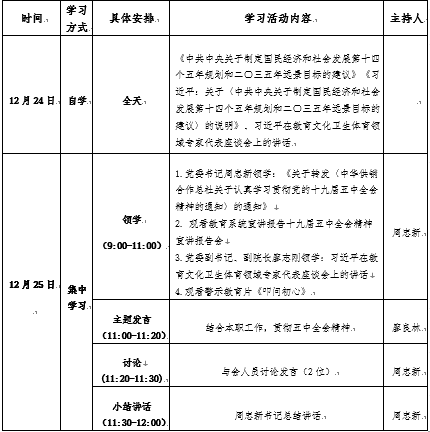 12月24日全天自学,12月25日(星期五)9:00-12:00集中学习
