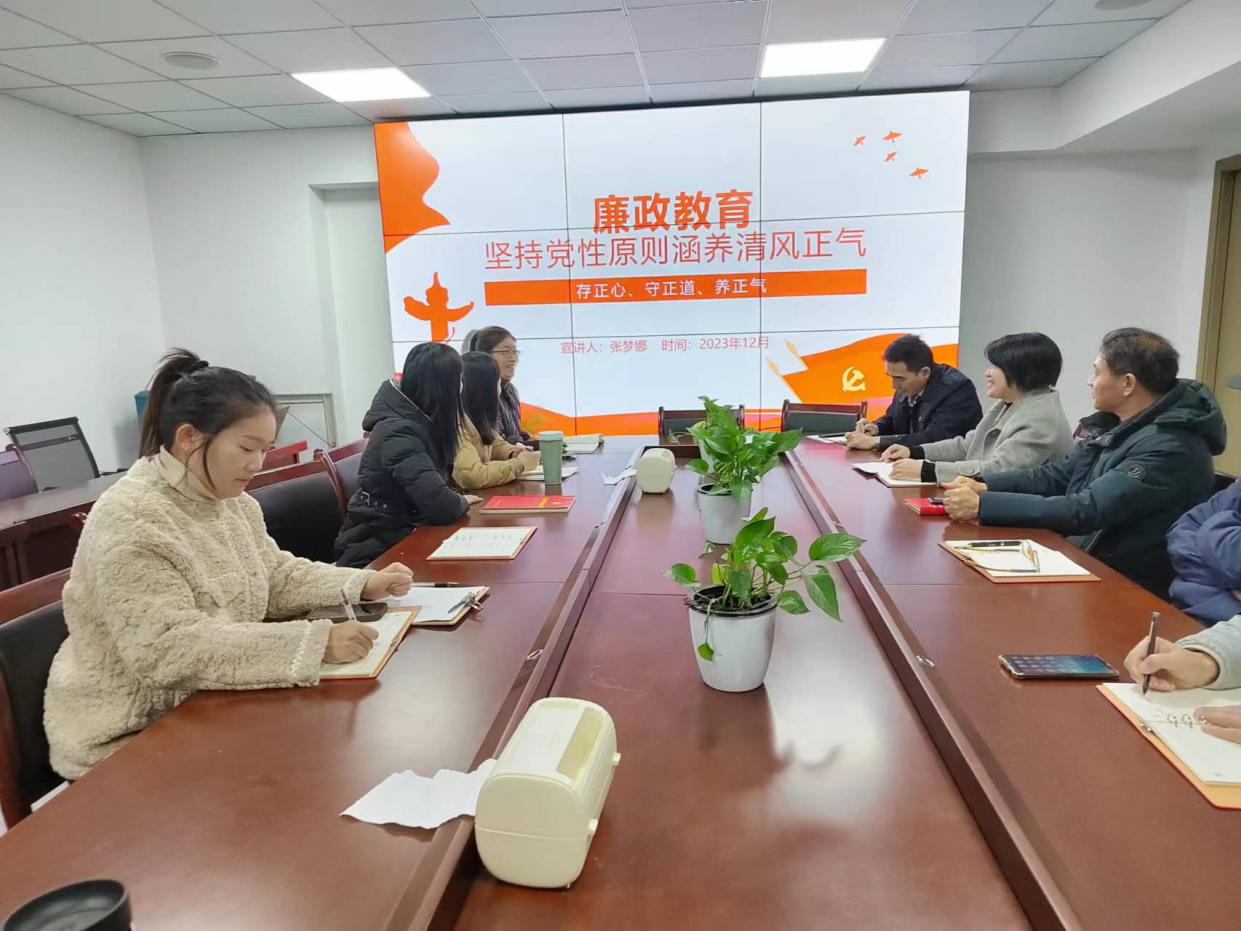 在本次主题党日活动上,首先由支部书记张梦娜同志为支部党员讲微党课《坚持党性原则涵养清风正气》,接着张梦娜同志领学了王双全在《中国纪检检查报》发表署名文章:聚焦高质量发展首要任务强化政治监督。