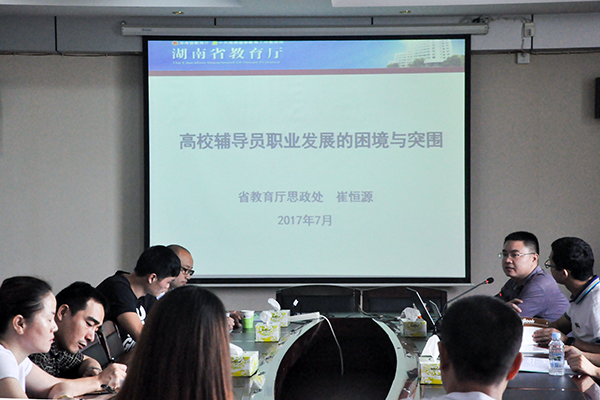 图为长沙职业技术学院学工部黄策先副教授作题为《大学生思想道德素质提升工程项目申报与建设》的主题讲座