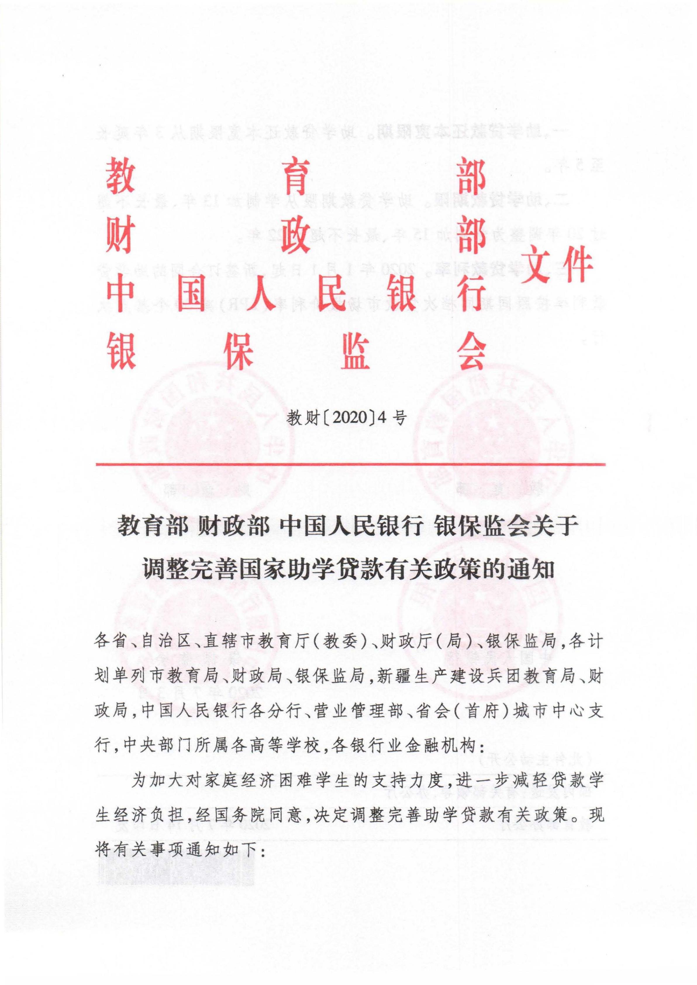 关于调整完善国家助学贷款有关政策的通知(教财〔2020〕4号)