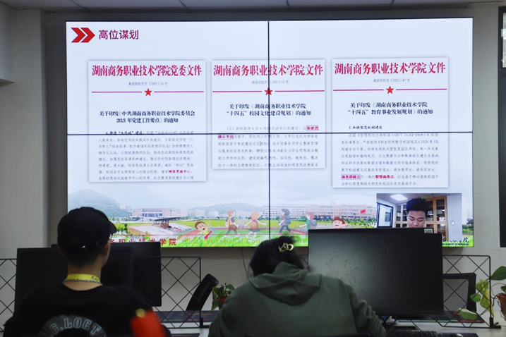 蔺老师在分享中讲到:湖南商务职院高度重视易班建设工作,加强学生在网思想引领。学院党委和行政通过党建工作要点明确建设目标,写入学院“十四五”重点规划,将“思政云”平台纳入数字校园“智慧云”建设;学院加强队伍建设,组建了从领导小组、工作中心、校院队伍再到班级学生干部的“四级”纵深工作体系;贯彻落实网络思政不低于30元/年·生专项工作经费;切实加强场地支持,高标准建设了近300平米的现代化网络思政和易班发展中心,成为了学校新的“网红打卡地”。