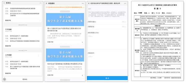 本次大赛通过校易班网平台,充分利用信息化手段,考核了学生干部学习能力、素质水平和创新思维,圆满完成所有竞赛项目,是学生干部在自我管理、自我服务、自我教育工作上的一次大督查,更是返校复课后通过信息化手段远程开展工作、提高办事效率的一次大演习。