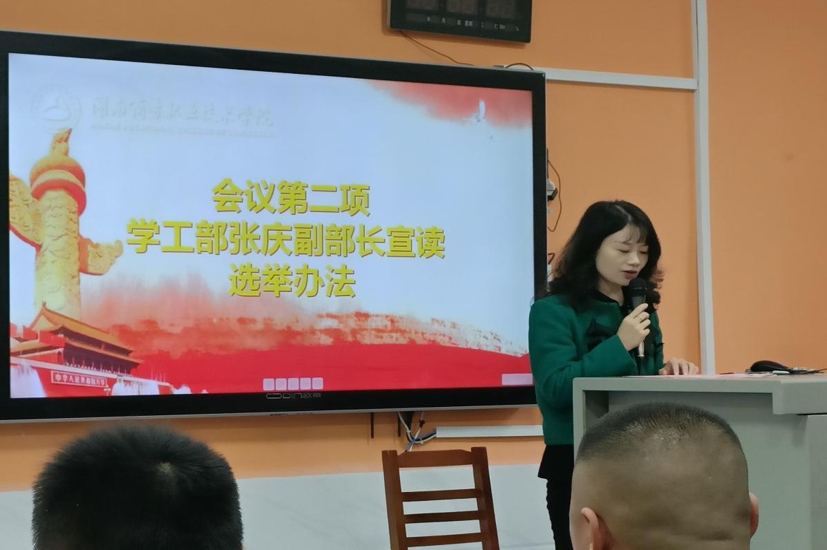 会议伊始,学工部张庆副部长宣读选举办法,对竞聘的竞聘方式作简单介绍,并强调大会竞聘的纪律要求。