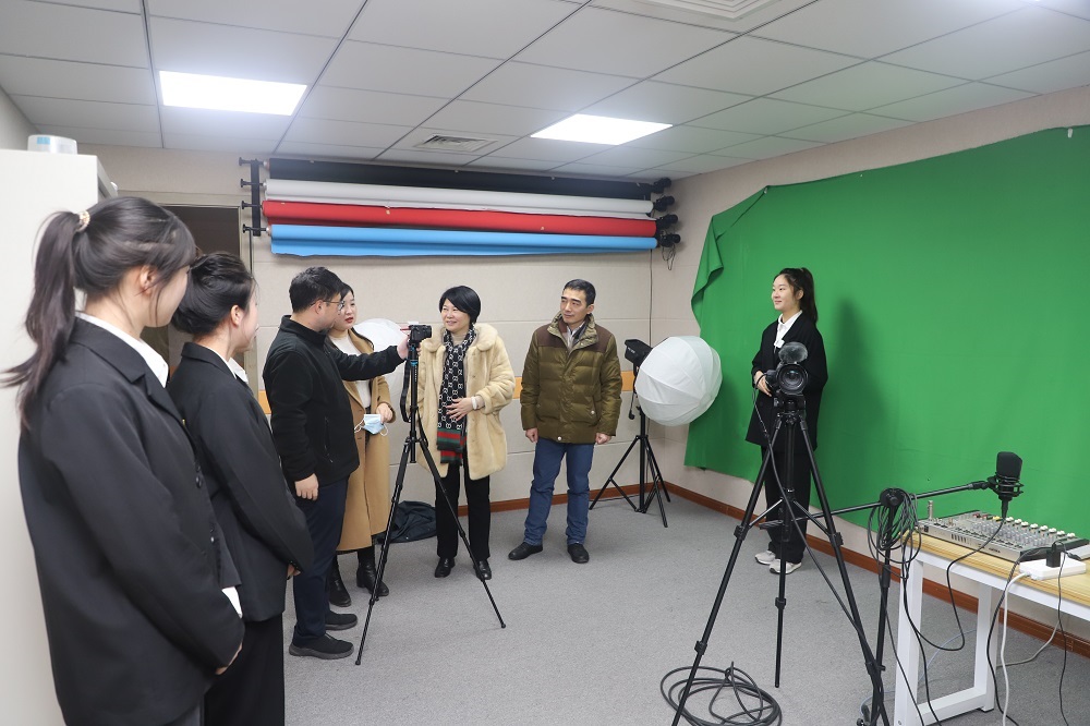 本网讯(通讯员 侯妍竹 龙丹) 2022年12月6日,电子商务学院学工党支部在大学生网络思政中心开展“党的二十大,我来学”接力讲的视频录制。学院党委委员、副院长禹明华,学生工作部部长杨明莅临指导,吴苾老师、侯妍竹老师带领参观录制现场。