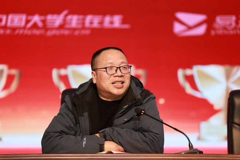 “学院党委历来高度重视大学生网络思政建设”。学院党委委员、宣传统战部部长聂振华代表学院党委,向一年来为学院学生网络思政工作中做出辛勤劳动的老师们、同学们表示衷心感谢,同时也对新当选的第六届易班工作站成员表示热烈祝贺。他指出,我们学院网络思政工作取得了累累硕果,希望在接下来的工作中,全体师生骨干要共同努力,用专业、新潮的方式创新工作,进一步教育、引领和服务广大师生;要围绕为国育才,抓牢思想政治工作,培养德智体美劳全面发展的社会主义接班人;要做到统一思想、凝聚力量、鼓舞斗志、团结奋斗,使学院网络思政工作取得更大的效果和成绩。