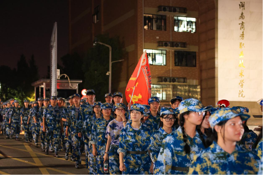 迷彩洪流踏夜前行 湖南商务职院4500名新生拉练淬炼青春