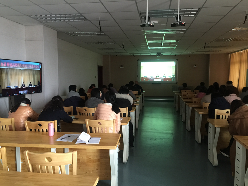 为贯彻落实全国和全省教育大会精神,总结和部署全省普通高校学生资助工作,交流高校学生资助工作创新发展的典型经验,2019年3月25日上午,学校廖良林副校长、学生工作处处长唐柳荷、学生工作处副处长杨秀军、各二级学院学管干事、学生工作处资助干事、全体专兼职辅导员在办公楼视频会议室集中收看了由湖南省教育厅组织召开的《全省普通高校学生资助工作视频会议》。