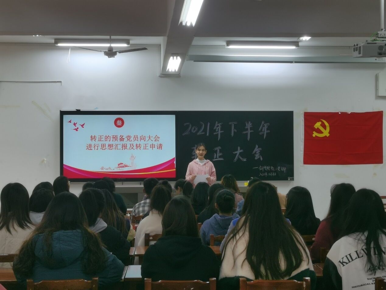 12月2日下午16:00,会计学院学工二党支部2021年下半年预备党员转正大会在二教301举行,本次大会由党支部助理谭梦舟主持,全体党员参与本次大会。