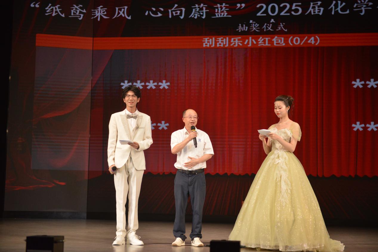 晚会现场情谊浓浓。化学化工学院院长周虎,院党委副书记周小明,副院长黄昊文、汪靖伦,各系(室)负责人、教师及学生代表等出席晚会现场。学院校友、江西省天钊色谱科技有限公司董事长吴建发先生受邀专程返校,见证2025届毕业生的荣耀时刻。