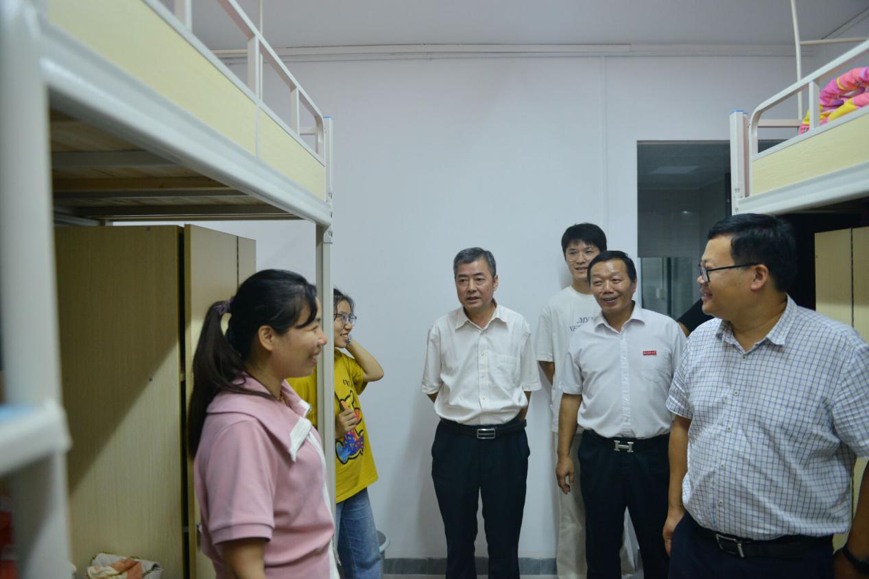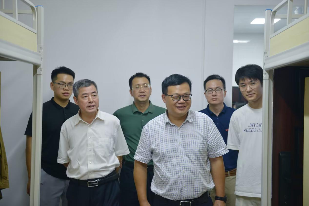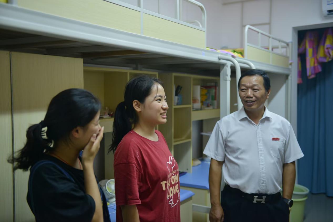 走进新生宿舍,领导老师对新生的到来表示热烈欢迎和亲切问候。走访中,院领导就学生宿舍环境、饮食问题、安全问题以及寝室卫生等方面进行亲切交谈,嘱托同学间要互相照顾,营造一个良好的宿舍氛围。