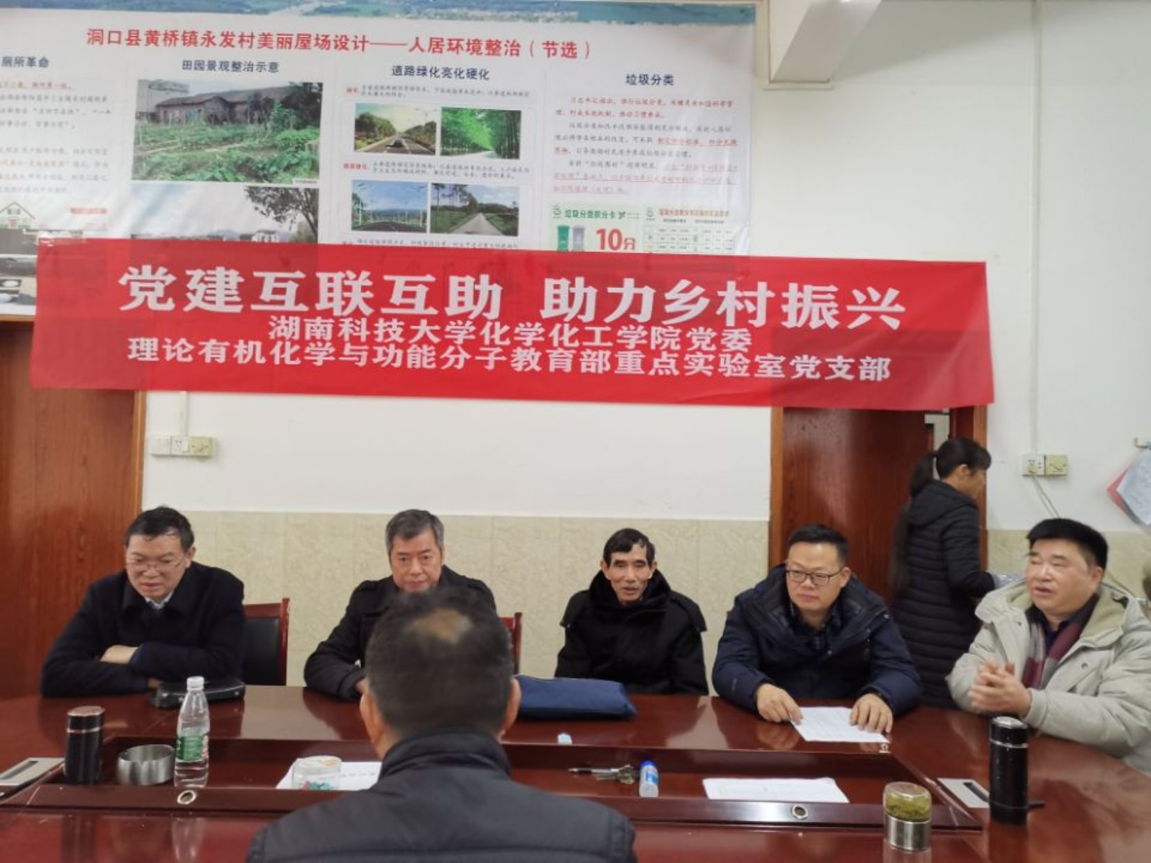 1月20日,学院党委和理论有机化学与功能分子教育部重点实验室党支部一行13人赴洞口县黄桥镇永发村开展“党建互联互助、助力乡村振兴”活动,村支两委、我校驻村工作队及永发村部分党员代表参加。