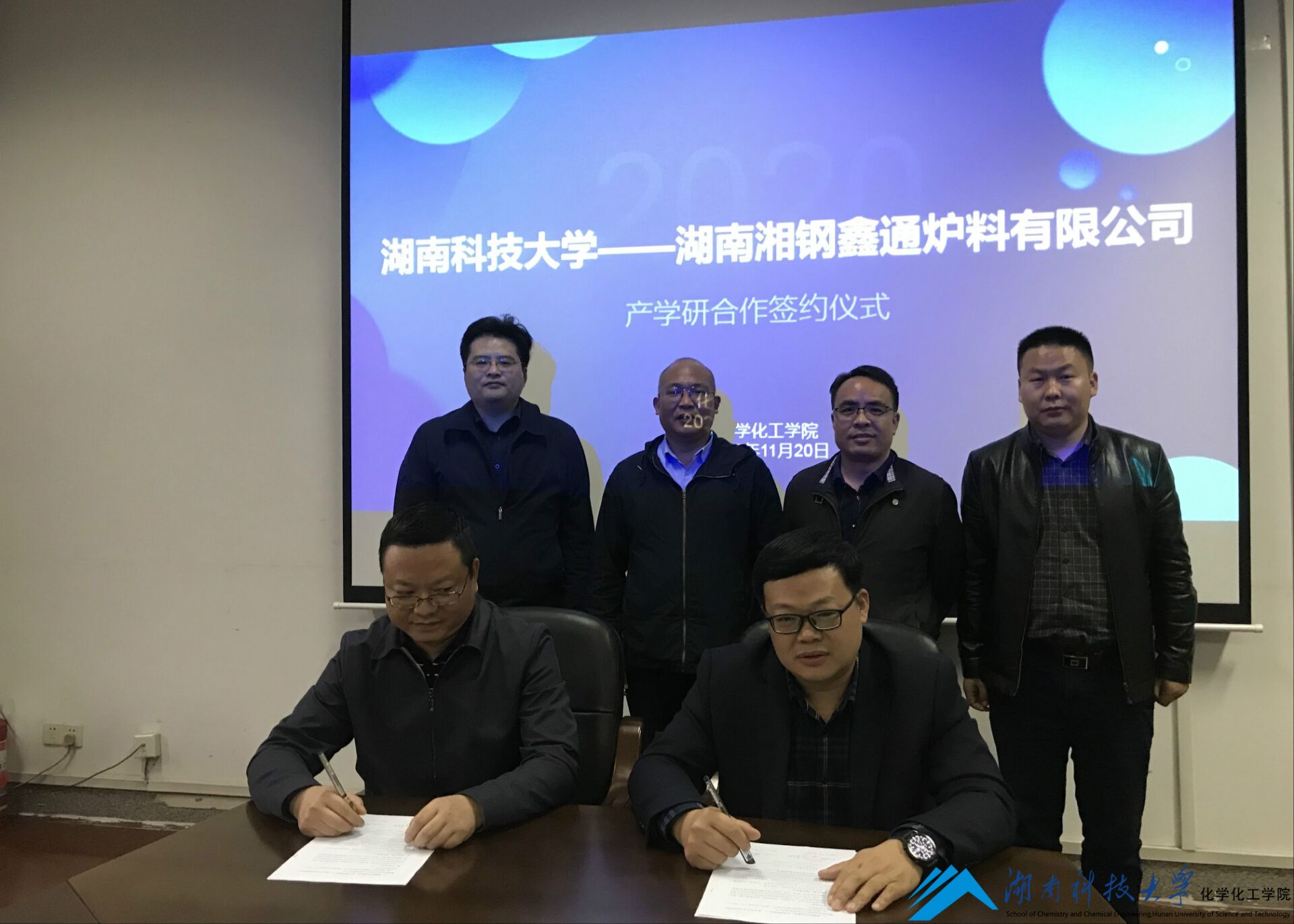 11月20日下午,湖南科技大学化学化工学院与湖南湘钢鑫通炉料有限公司产学研合作协议签订仪式在化工楼310会议室举行。协议旨在充分发挥高校与企业双方优势,进一步开展多层次、多形式、多领域的合作,为学校科学研究、人才培养,企业创新研发合作提供更广阔的合作空间。