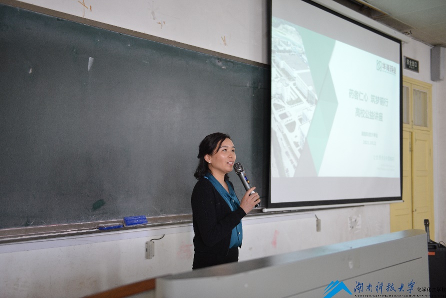 讲座伊始,朱艳校友从医学行业动态专题报告方面谈论行业前景和职业发展。其后,朱艳校友跟同学们一起分析了医药行业最新发展趋势和谈论到制药行业是如何看待制药人的。此外,她还分享了自己的个人成长经历以及求职的困惑和求职过程中的经验,她勉励同学们努力学习,付出终会有回报,华海药业公司也是同学们将来就业不错的选择。