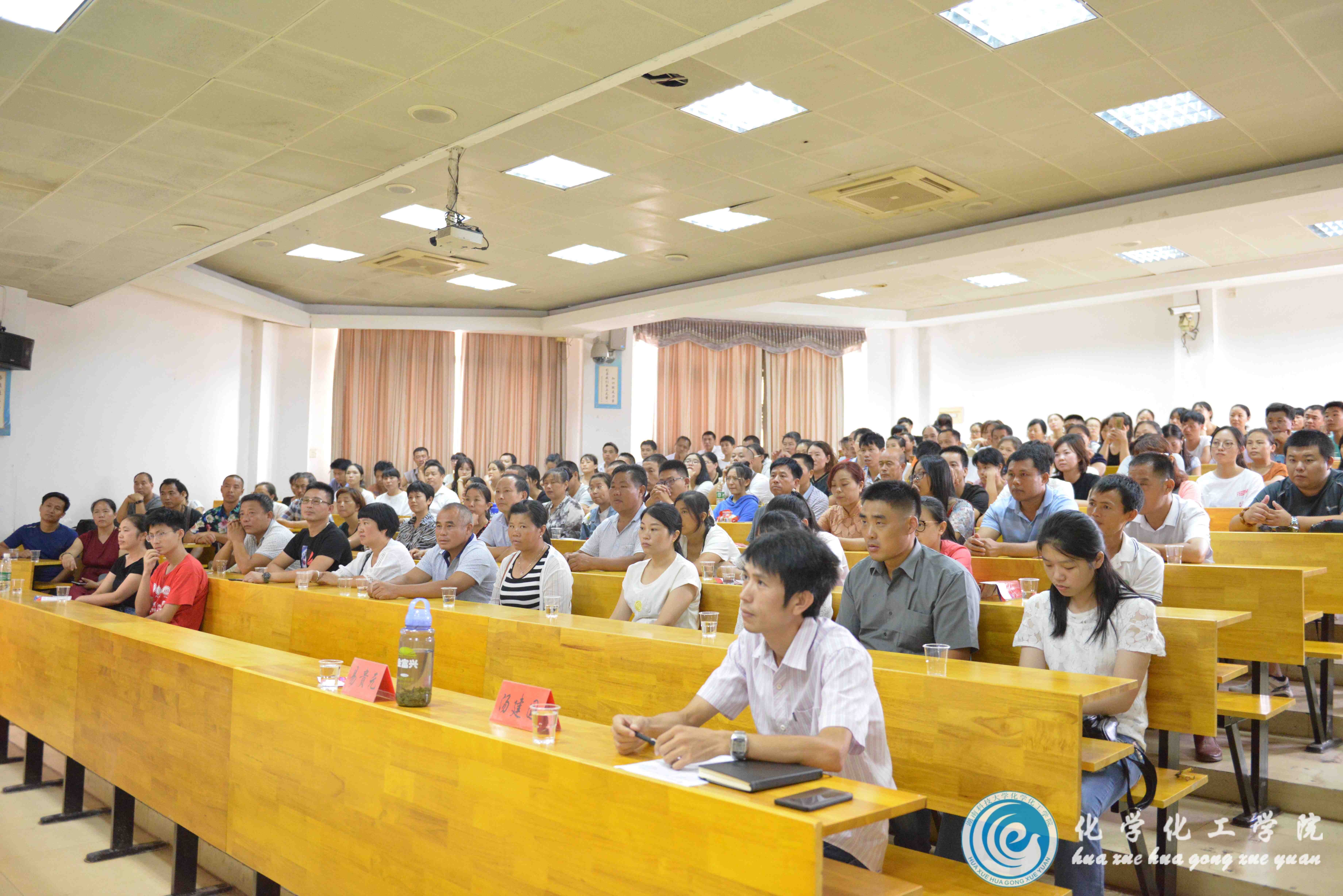 为进一步加强学院与家长之间的密切联系,促进家校沟通,,真正达到家校携手共同培养孩子,化学化工学院迎新家长会于9月7日下午4点在十教东附楼304顺利召开。本次会议由我院团委学生会副主席张海洋主持,化学化工学院党委副书记易贵元、18级辅导员汤建国出席本次会议,部分家长和新生到场聆听。