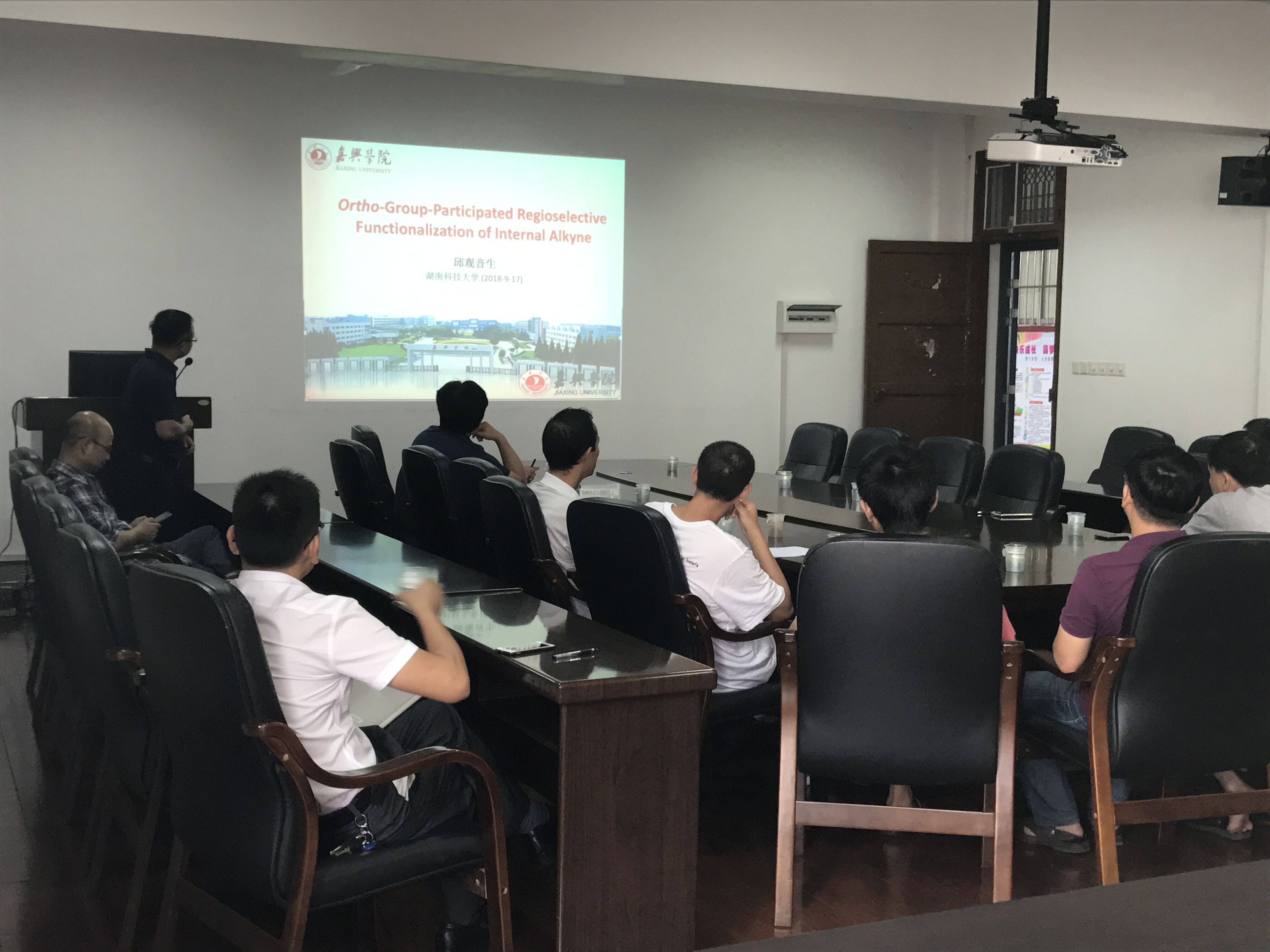 9月17日上午10点,应化学化工学院和理论有机化学与功能分子教育部重点实验室的邀请,嘉兴学院邱观音生博士在化工楼三楼学术报告厅以“Ortho-Group-Participated Regioselective Functionalization of Internal Alkyne”为主题,做了一场精彩的学术报告。化学化工学院师生、理论有机化学与功能分子教育部重点实验室全体科研人员等参加了报告会。此次报告会由我院郑柏树副院长主持。