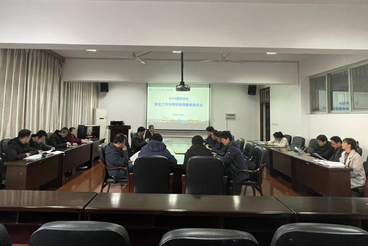 党委副书记周小明传达了学校就业工作会议精神,总结了2023届就业与考研工作,并就学院2024届毕业生就业情况作出详细汇报,对就业工作推进部署作了详细说明。他强调,班主任要组织召开2024届毕业生考研-就业主题班会,做好思想开导、心理疏导工作。同时学院持续开展访企拓岗行动,院领导带队走访不小于六家用人单位,系主任带队走访不少于四家用人单位,对建档立卡学生进行帮扶。学院建立有效的激励机制,针对就业率落实较好的系、办、导师进行相应奖励。其次,学院建立学生就业落实情况的实时动态监测与发布机制,完善师生结对帮扶和指导制度,坚持分类指导。
