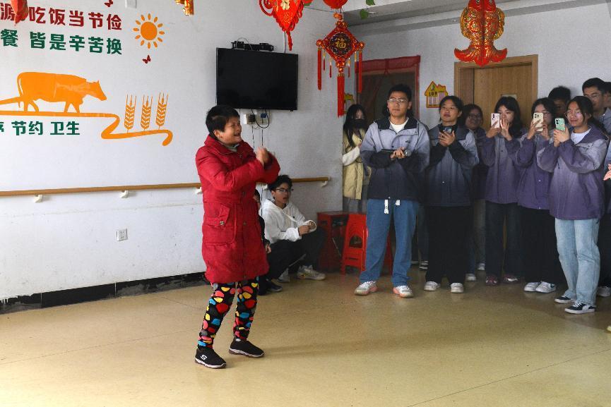 志愿者们和老人一起唱歌跳舞