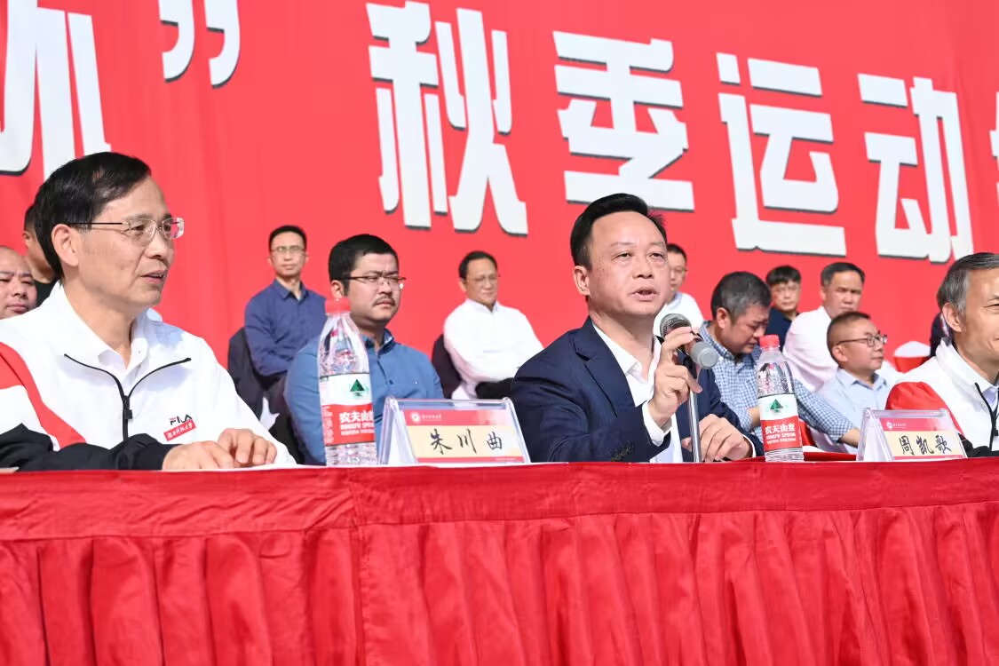 校长朱川曲致开幕词。他首先对本次运动会的召开表示热烈祝贺,向所有工作人员和广大师生表示亲切慰问。他强调要把体育运动当成一种习惯,让身心健康成为一种追求。他希望运动员在为期三天的比赛中顽强拼搏、展现自我并取得佳绩。