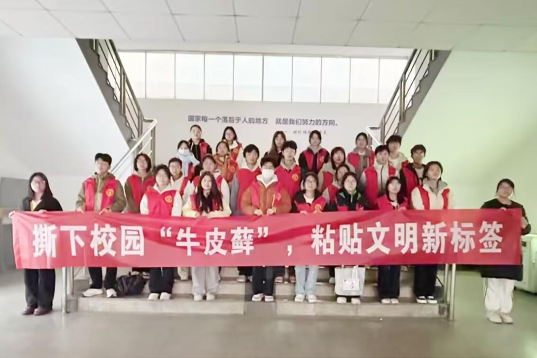 为弘扬劳动精神,营造整洁文明的校园环境,我院于3月29日组织开展了校园“牛皮癣”清理活动。本次活动以“撕下校园牛皮癣,粘贴文明新标签”为主题,号召学生志愿者积极参与校园环境卫生整治,以实际行动传递志愿服务精神。