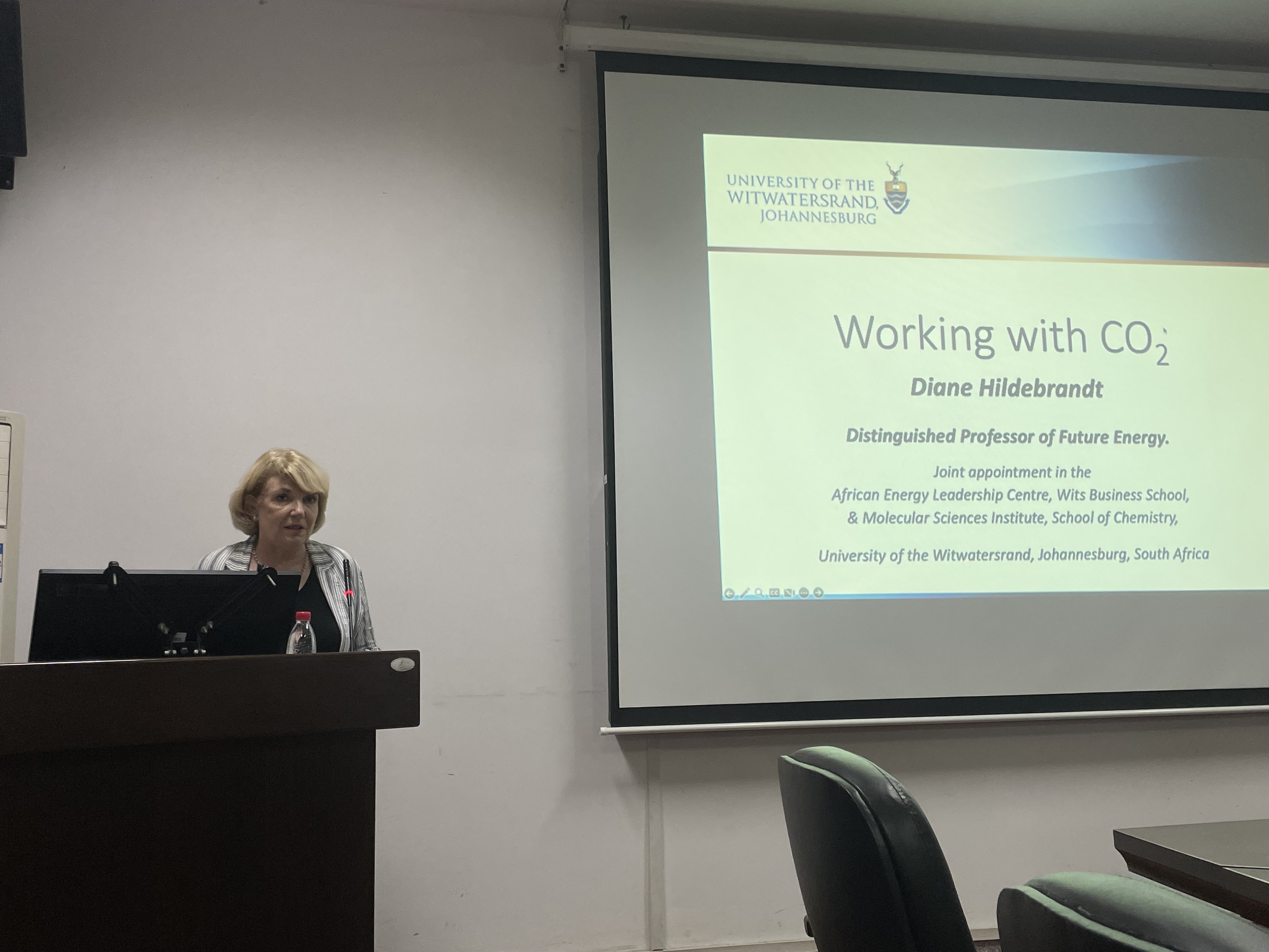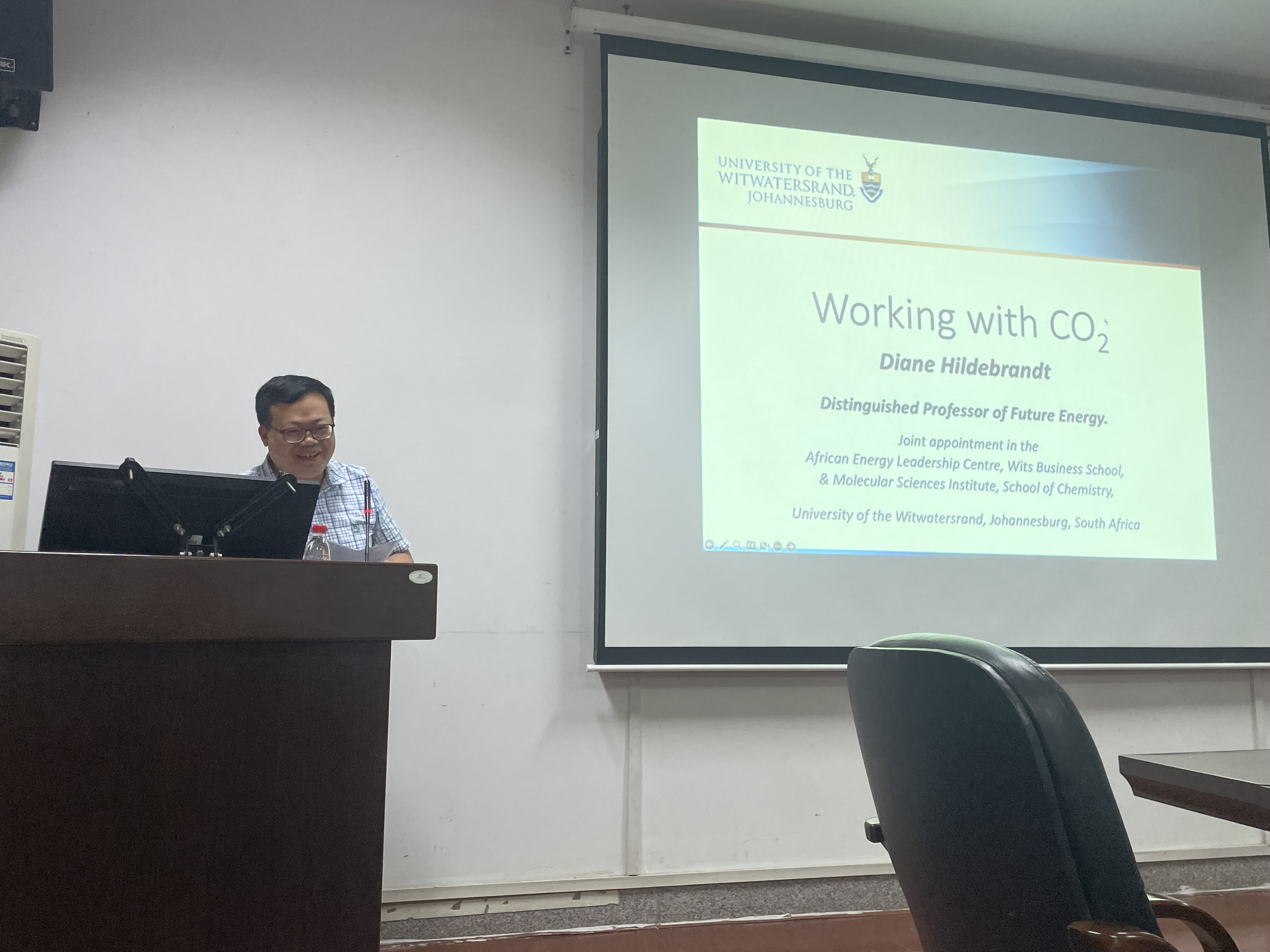 6月24日下午,南非皇家协会,科学院工程院三院院士戴安希尔特布兰特教授应邀来我院作了题为“Working with CO2”的专题学术报告。报告会由化学化工学院院长周虎主持,学院师生代表参加了报告会。