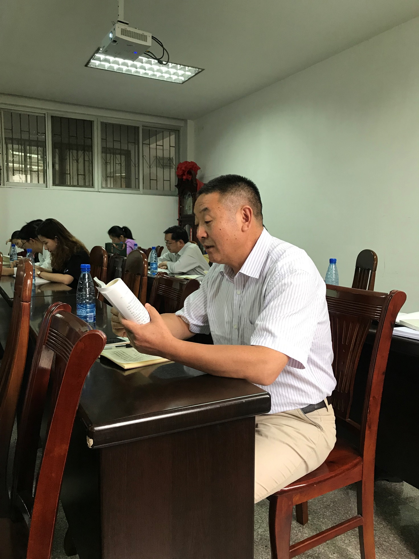 与会的每名理论学习中心组成员以及党支部书记分章节领读了《习近平关于“不忘初心、牢记使命”论述摘编》,学习中,大家坚持读原著、学原文、悟原理,力争学深学透、学懂弄通,努力实现理论学习有收获、思想政治受洗礼,确保取得实实在在的学习成效。