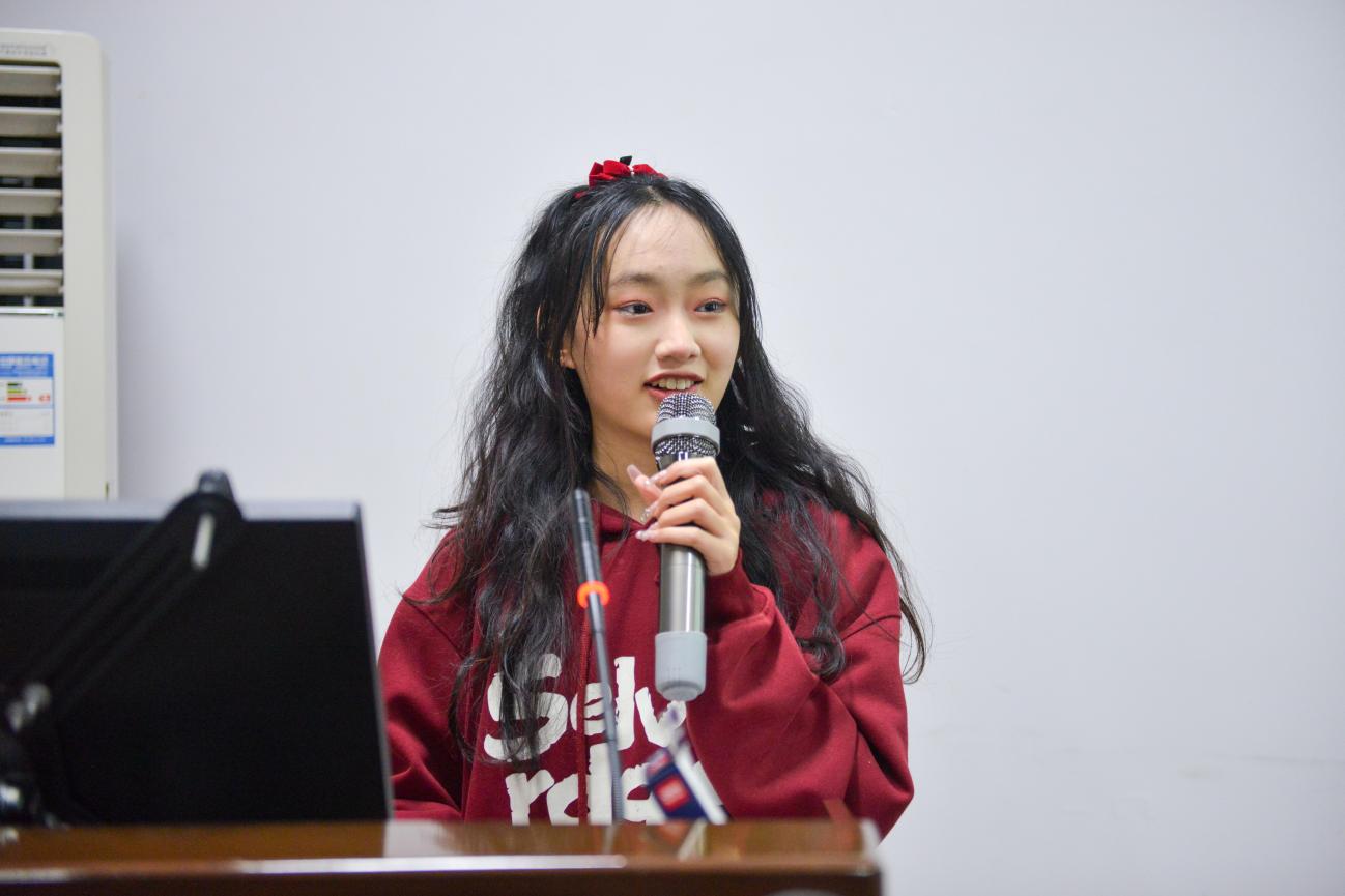 团委学生会主席团陈钰婕在讲话中对同学们作出建议,要勇于尝试敢于打磨自己,同时部门间、团队成员间要互帮互助、共同进步。最后,她希望同学们在加入团委学生会的日子里能够丰富自己的精神世界,找到自己前进的方向。