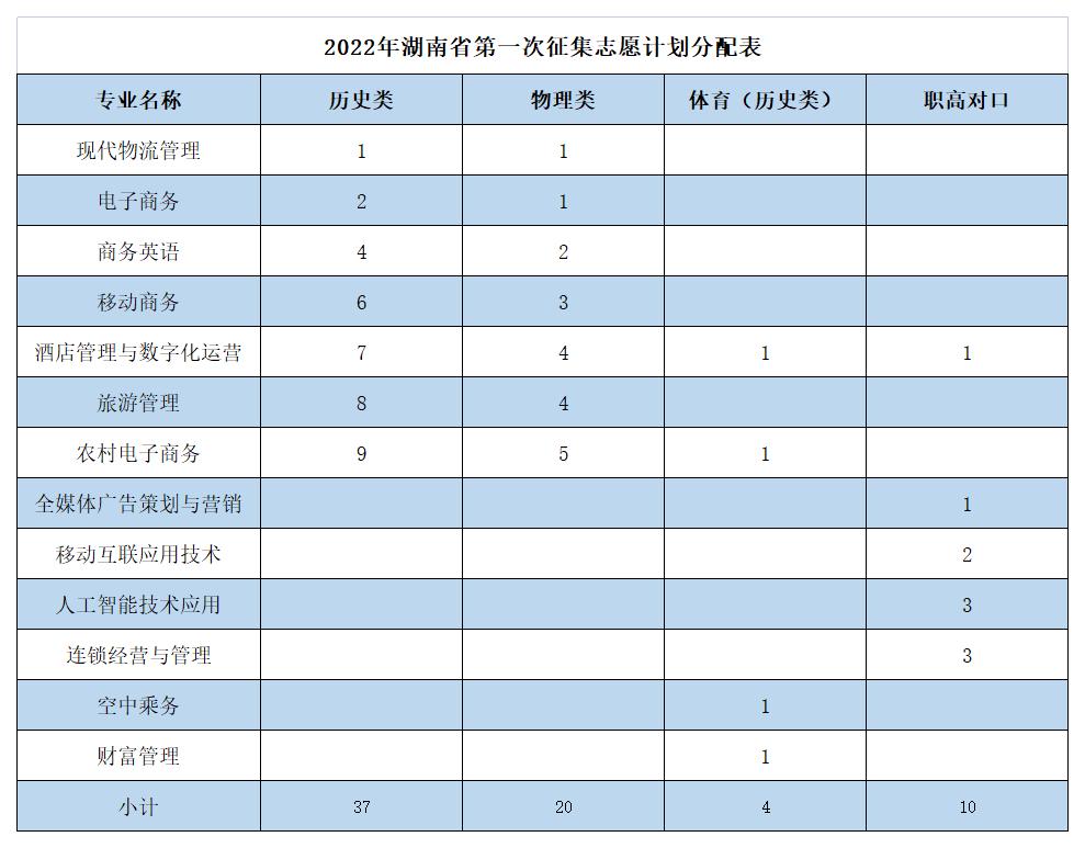 2022年湖南商务职业技术学院招生来源计划表
