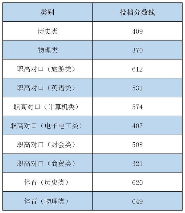 湖南商务职业技术学院2021年湖南省第一批投档分数线