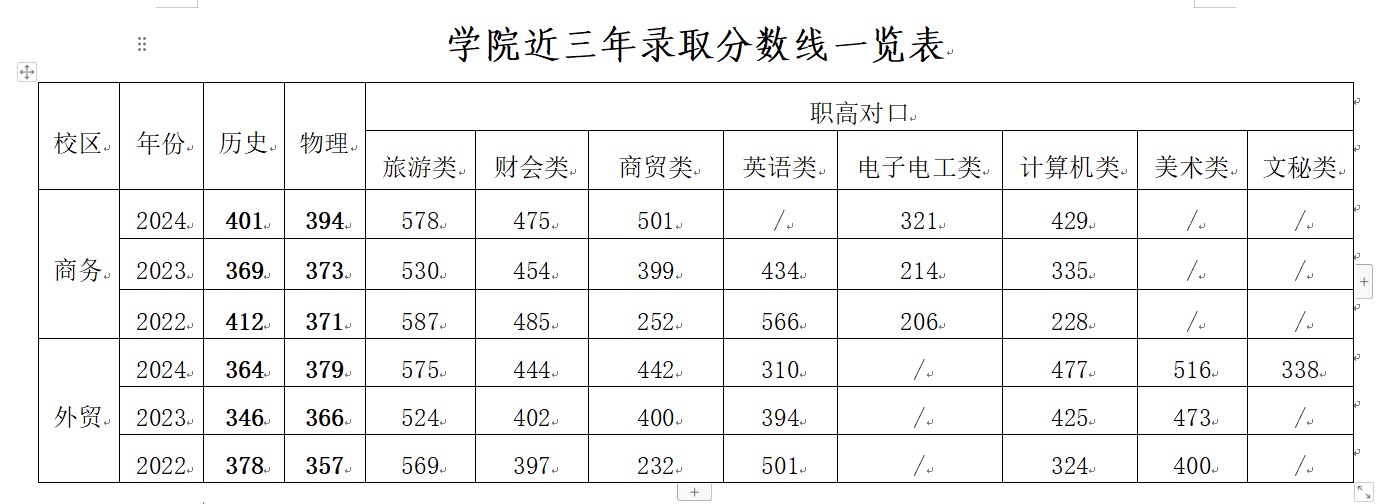 学院近三年投档分数线