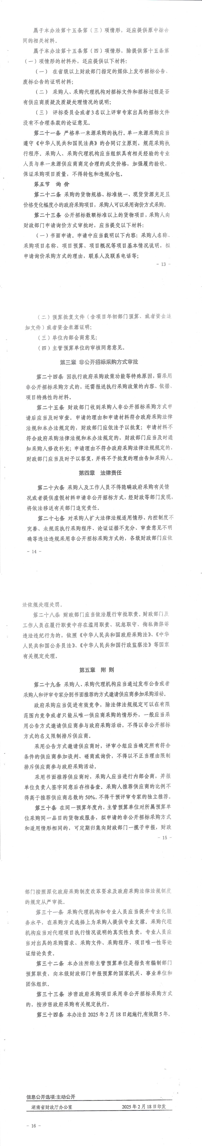 湖南省财政厅关于印发《湖南省政府采购非公开招标采购方式审批管理办法》的通知