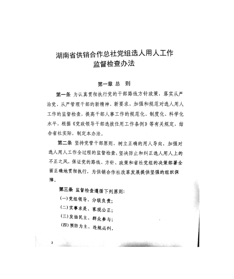 关于印发《湖南省供销合作总社党组选人用人工作监督检查办法》的通知